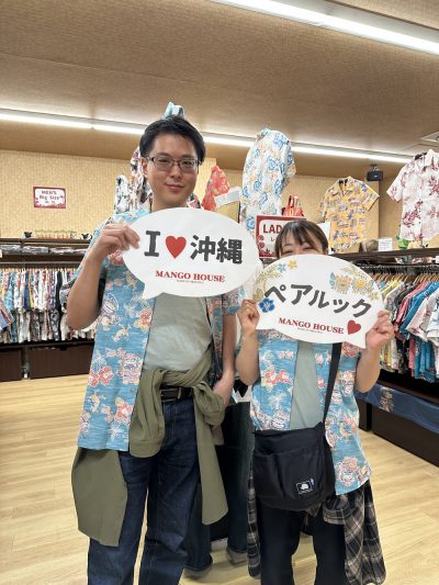 マンゴハウスではかりゆしウェアのデザイナーがお客様に似合うアロハシャツを一緒に捜してくれます!!