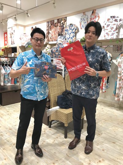 マンゴハウスのかりゆしで これからも楽しくカッコよく お仕事頑張ってくださ〜い♪