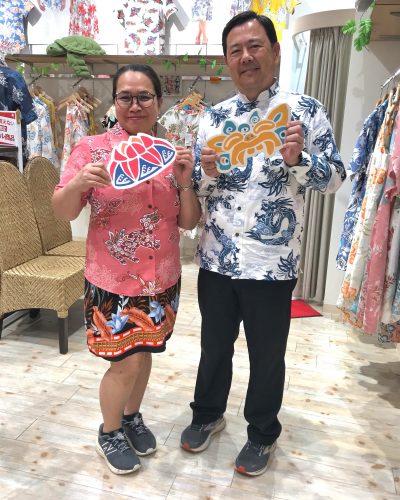 人気のシーサー柄の可愛らしいピンクを選ばれました!これからはご主人とお揃いコーデが楽しめますね♡