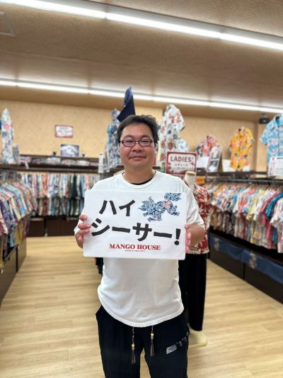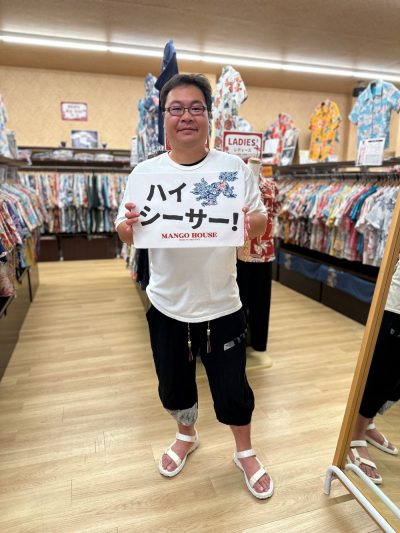 沖縄には何度か遊びに来ているそうですが、かりゆしウェアは初との事!たまたま通りがかりで見つけたマンゴハウス国際通り2号店にご来店して下さいました!✨