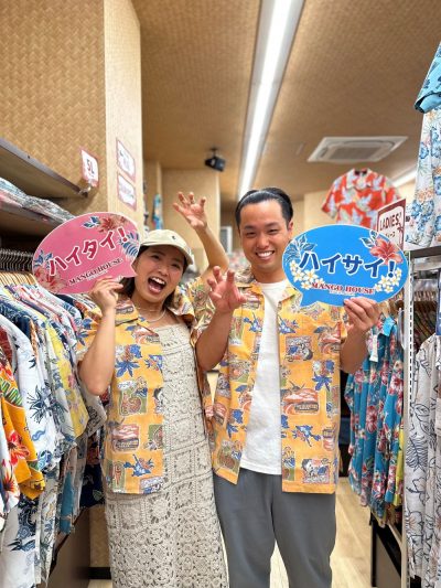 マンゴハウスではかりゆしウェアのデザイナーがお客様に似合うアロハシャツを一緒に捜してくれます!!