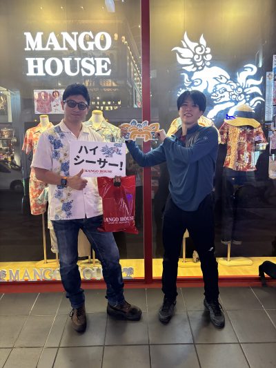 2年前にマンゴハウス国際通り店で購入されたかりゆしウェア着用されてのご来店!