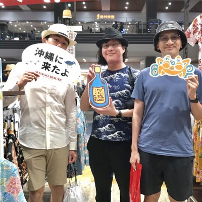 色々ご試着して、それぞれシーサー柄をお選びになられました