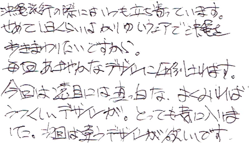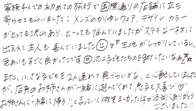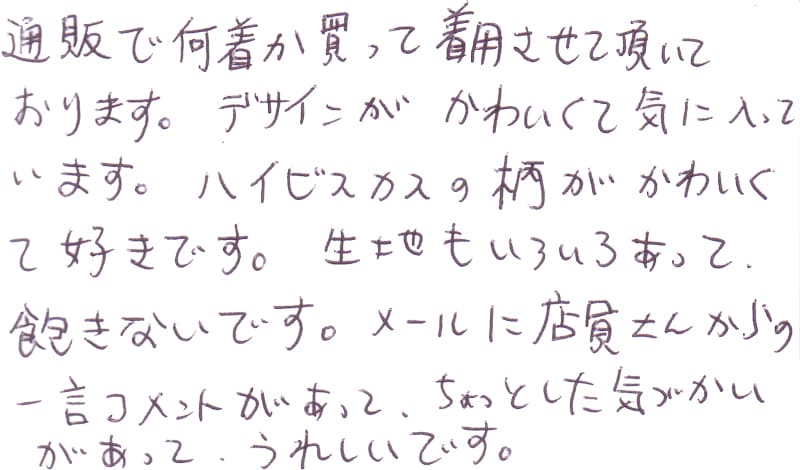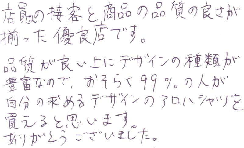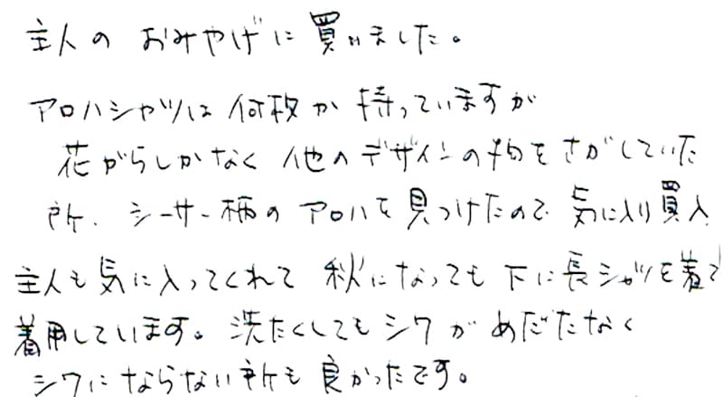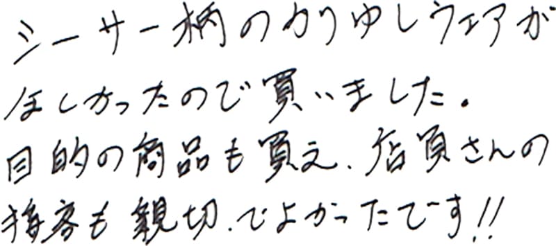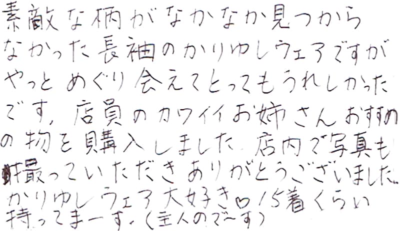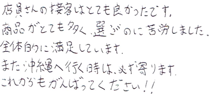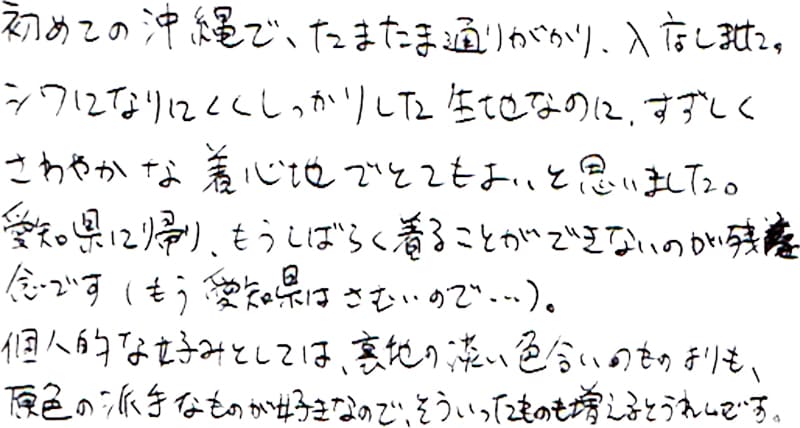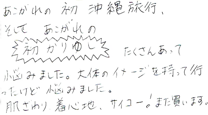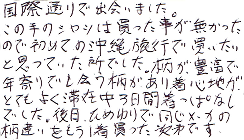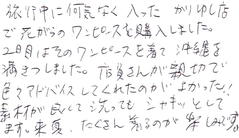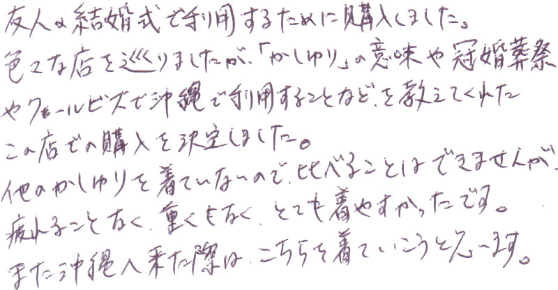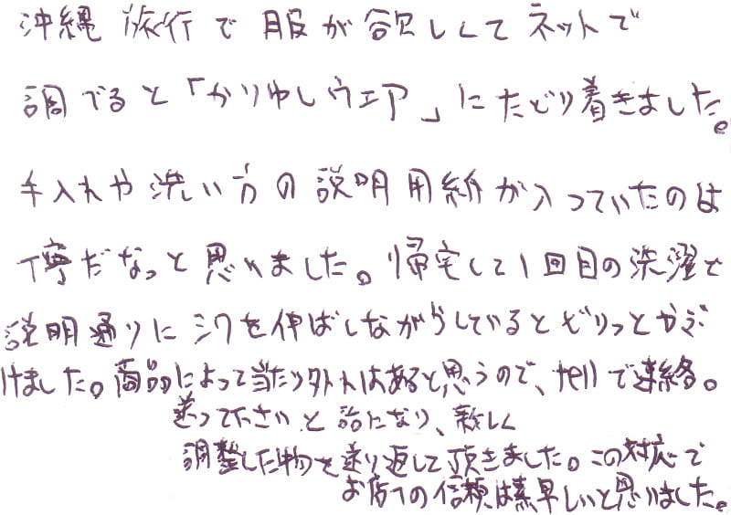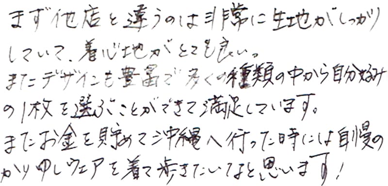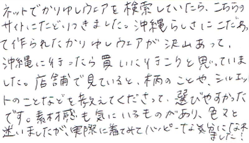 - おすすめして頂いたかりゆしウェアを購入しました。