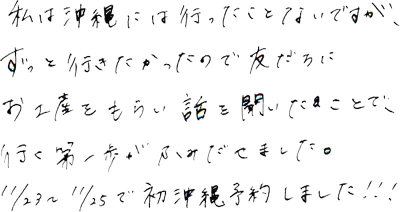 2019年11月06日 初めて沖縄に行きました 様 20代