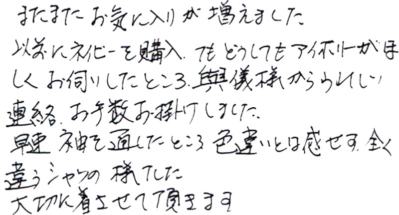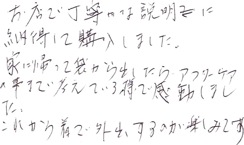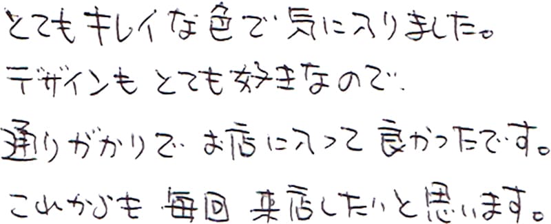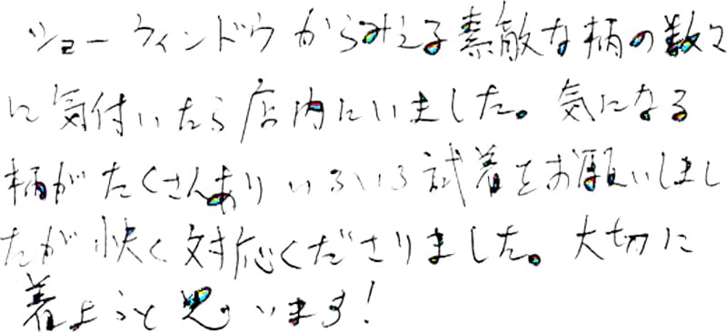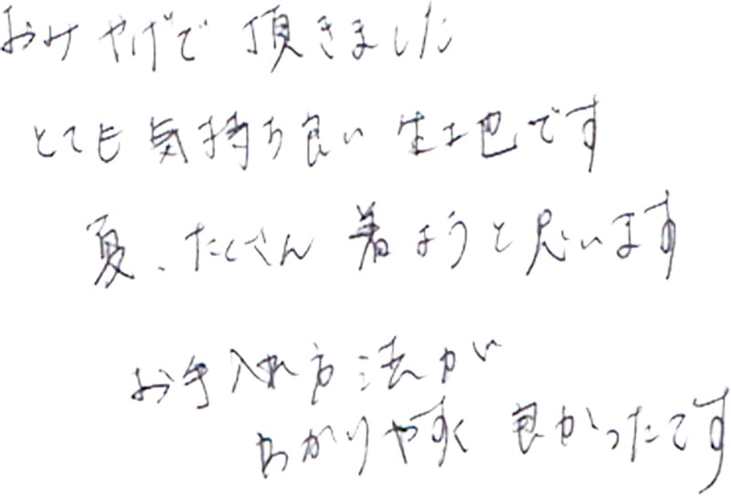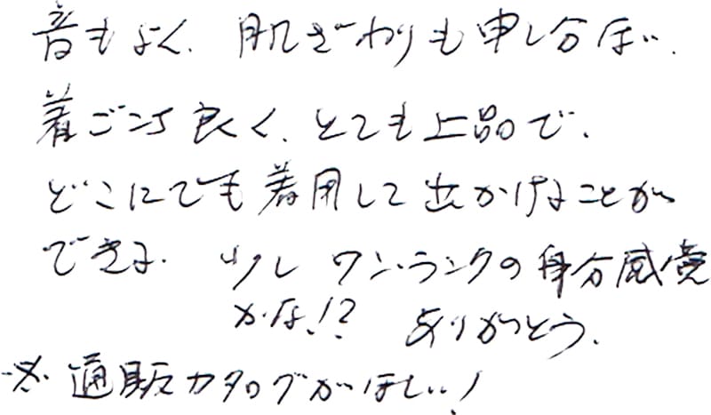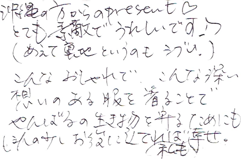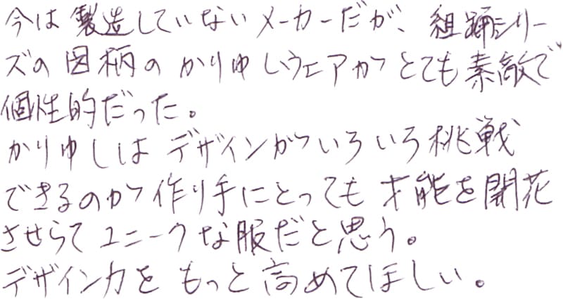 - これからも、素敵な服を作って下さい。