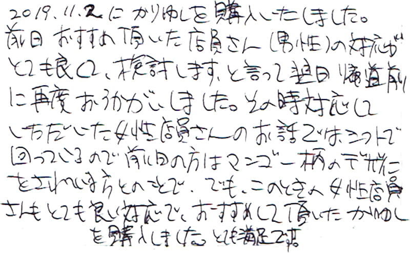 2019年11月05日 ペンネームなし 様 50代