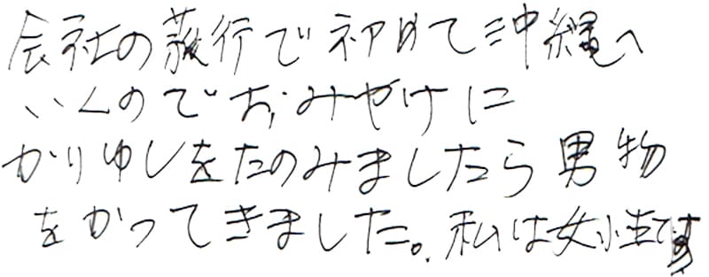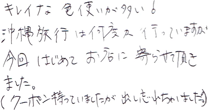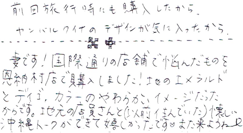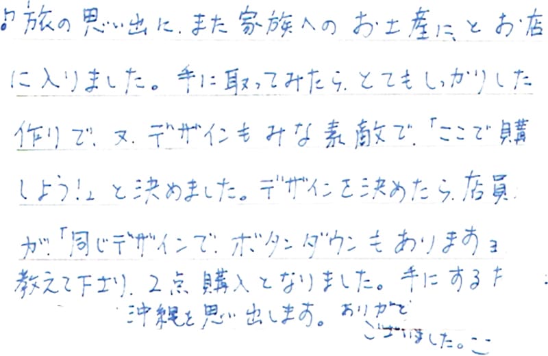 - 手にするたびに沖縄を思い出します。
