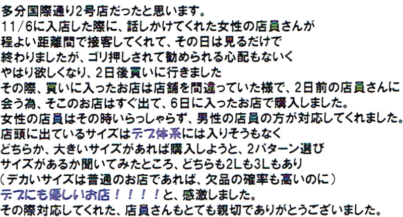2019年11月15日 2L入るかと思ったら3Lだった女 様 40代