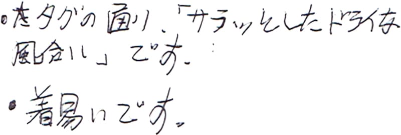 - 着心地で選びました。
