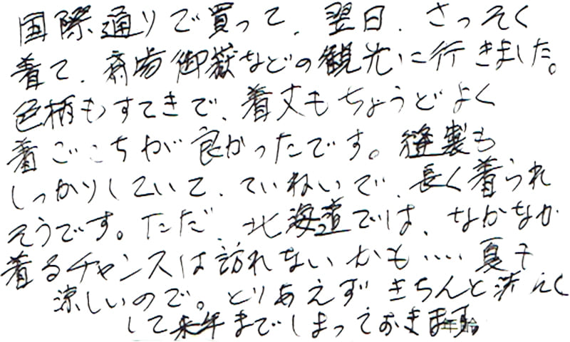 もうしばらく着ることができないのが残念です…