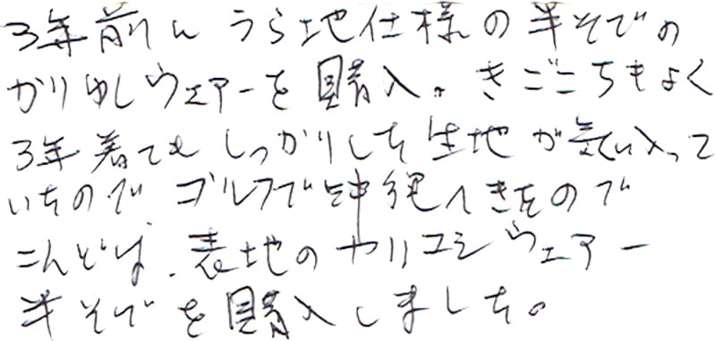 - 3年着てもしっかりした生地が気に入って…