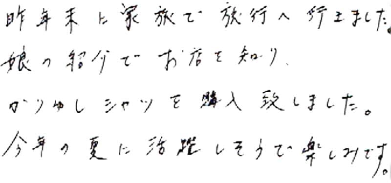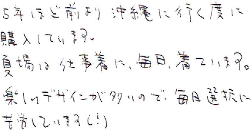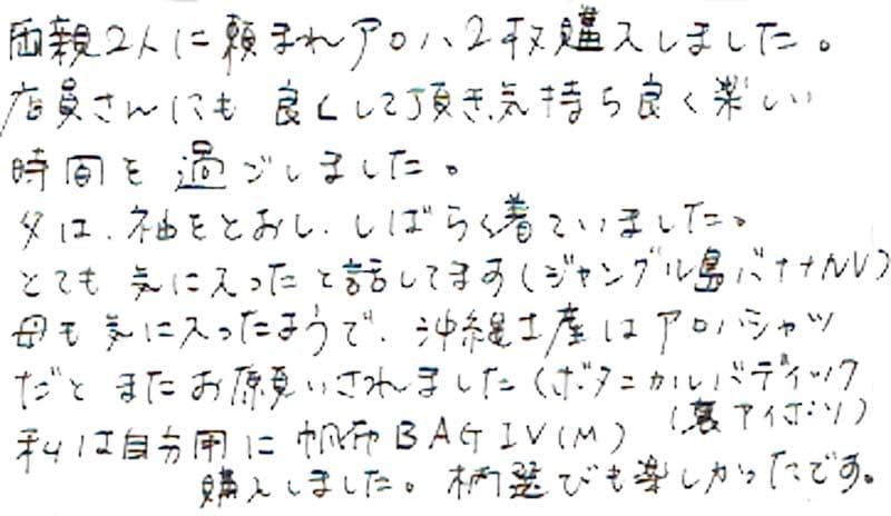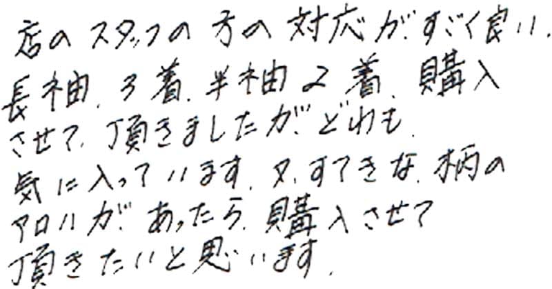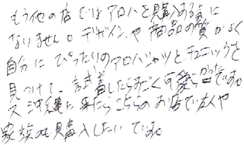又、すてきな柄のアロハがあったら購入させて頂きたいと思います。