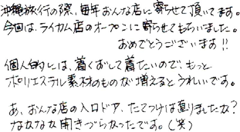 - 今回は、ライカム店のオープンに寄らせてもらいました。