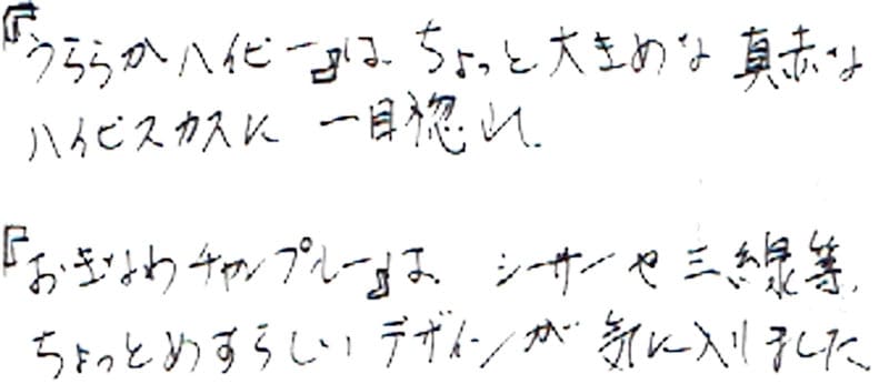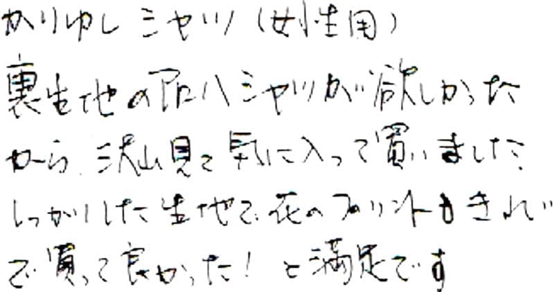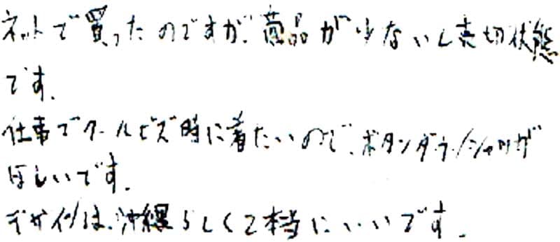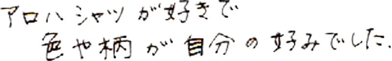 - 又、すてきな柄のアロハがあったら購入させて頂きたいと思います。