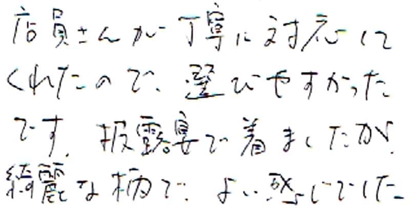 - 披露宴で着ましたが、綺麗な柄でよい感じでした。