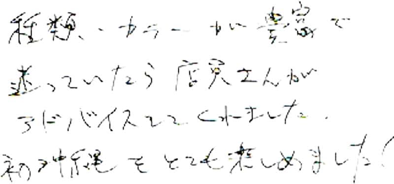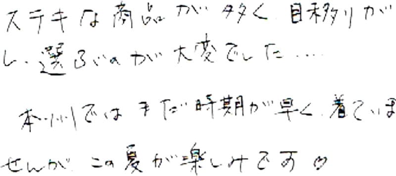 - ステキな商品が多く、目移りがし、選ぶのが大変でした…
