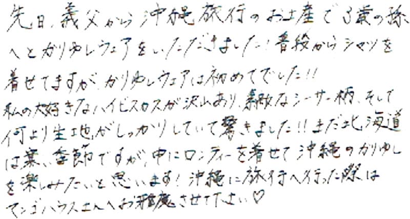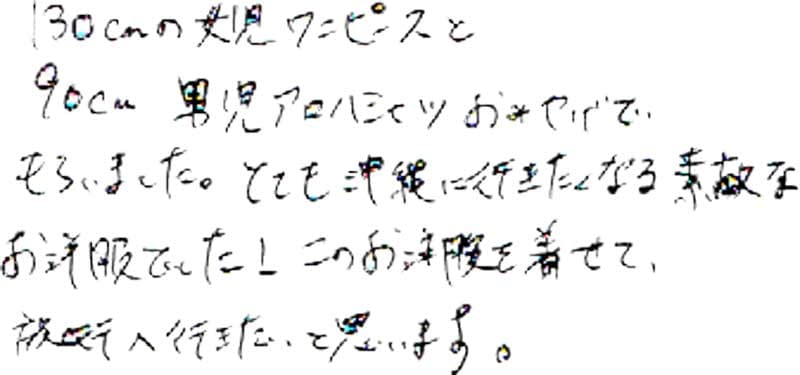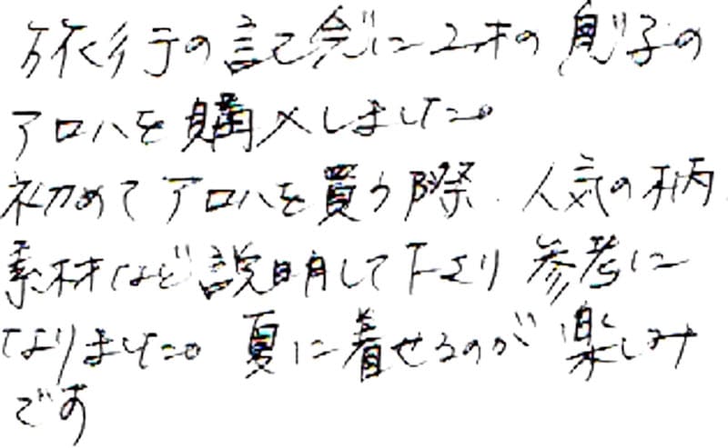 - 旅行の記念に2才の息子のアロハを購入しました。
