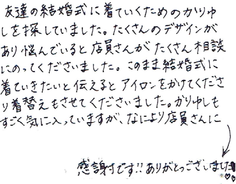 - 友達の結婚式に着ていくためのかりゆしを探していました。