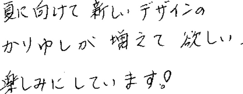 - 長袖の種類を多く作ってほしい。