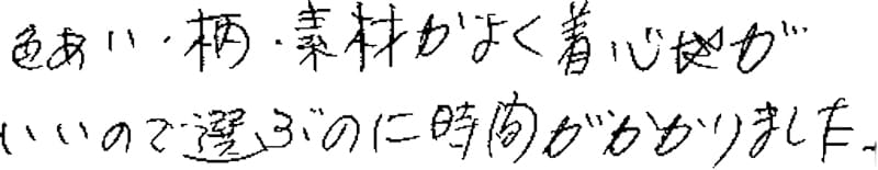 色あい、柄、素材がよく着心地がいいので選ぶのに時間がかかりました。