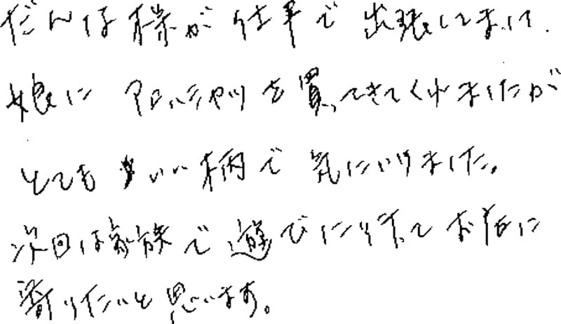 - だんな様が仕事で出張してまして…