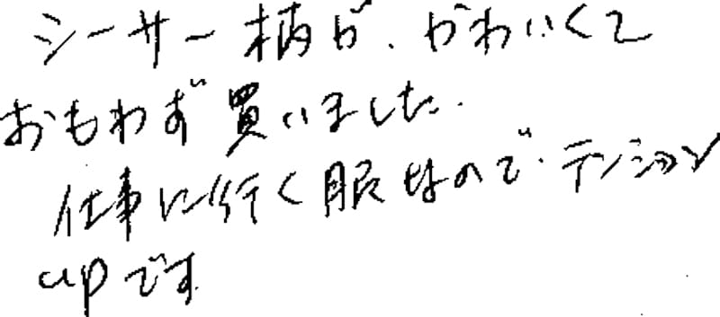 シーサー柄が、かわいくておもわず買いました。仕事に行く服なのでテンションupです。