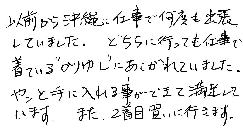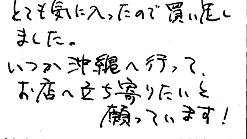 とても気に入ったので買い足しました。いつか沖縄へ行ってお店へ立ち寄りたいと願っています!
