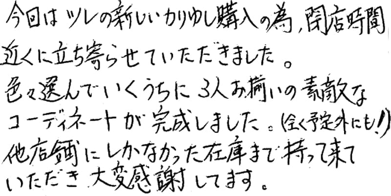 - この度は商品の交換に対応頂きましてありがとうございます。