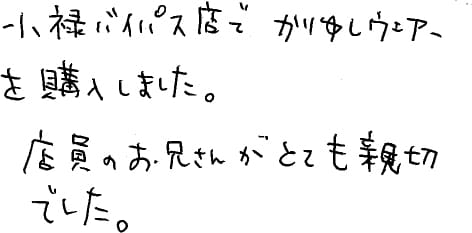 小禄バイパス店でかりゆしウェアを購入しました。店員のお兄さんがとても親切でした。