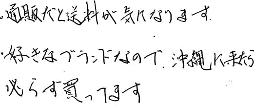 ・好きなブランドなので、沖縄に来たら必らず買ってます。