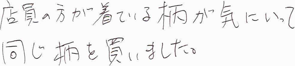 店員の方が着ている柄が気にいって同じ柄を買いました。