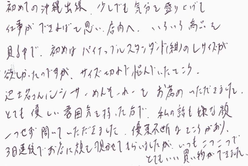 沖縄に旅行する際には必ずお店の方に立ち寄らせてもらいます。