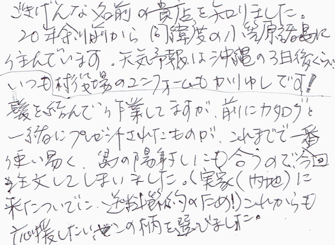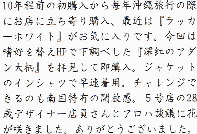 お客様の声 かりゆしウェアアロハシャツ専門店