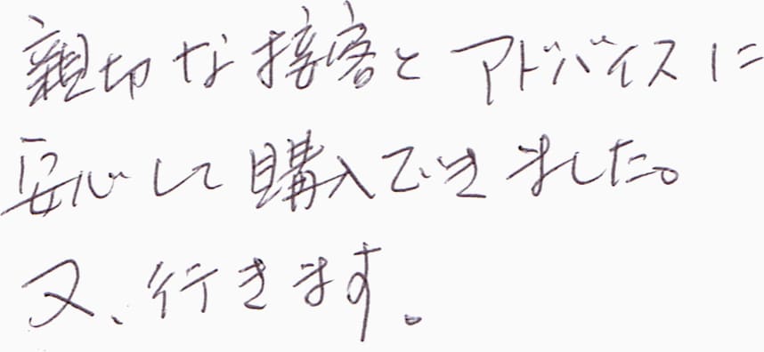 親切な接客とアドバイスに安心して購入できました。又、行きます。
