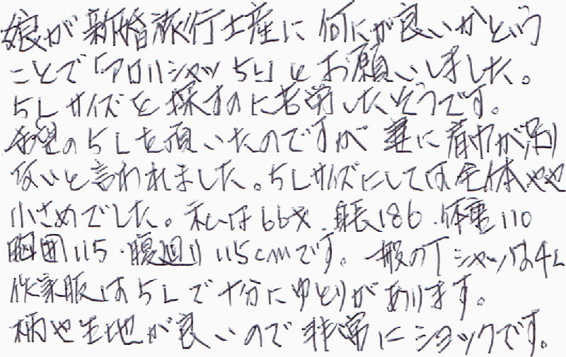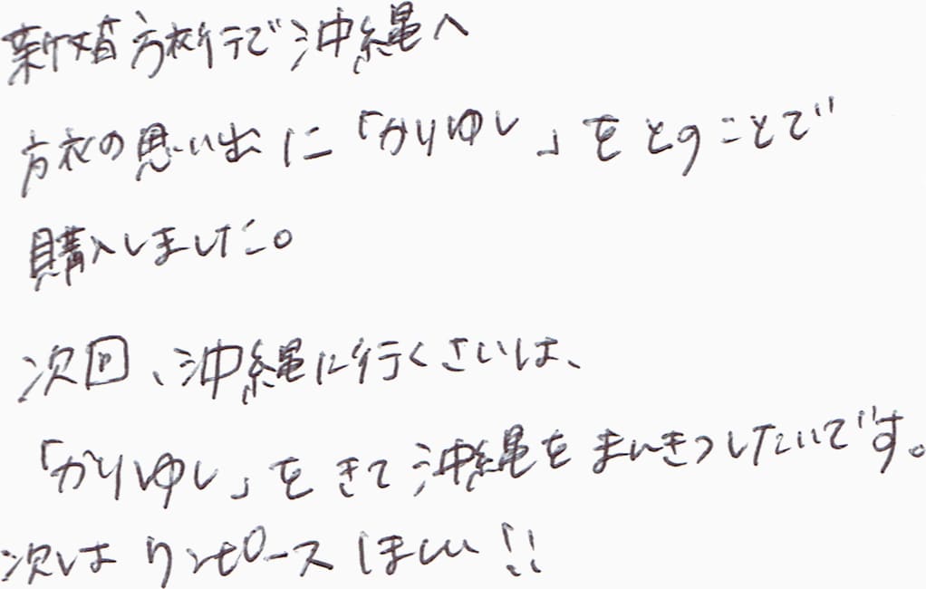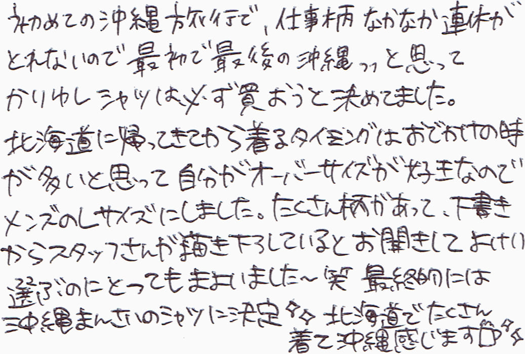 - 旅の思い出に「かりゆし」をとのことで購入しました。