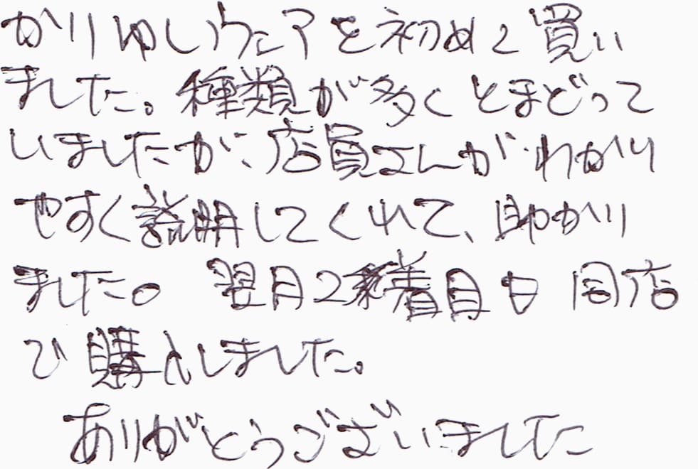 - 種類が多くとまどっていましたが、店員さんがわかりやすく説明してくれて、助かりました。