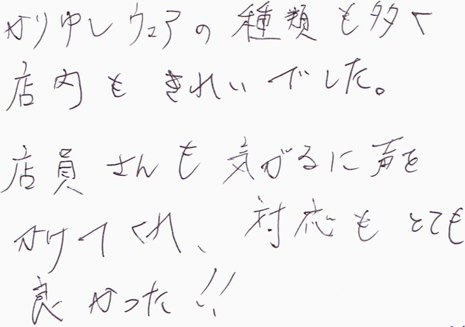 - 店員さんも気がるに声をかけてくれ、対応もとても良かった!!