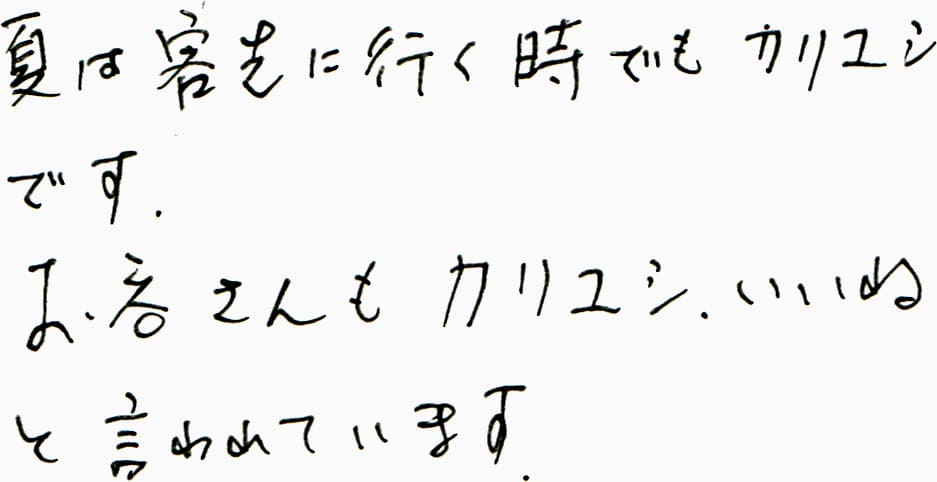 夏は客先に行く時でもカリユシです。お客さんもカリユシ、いいねと言われています。
