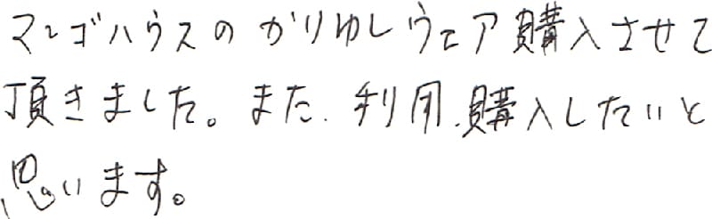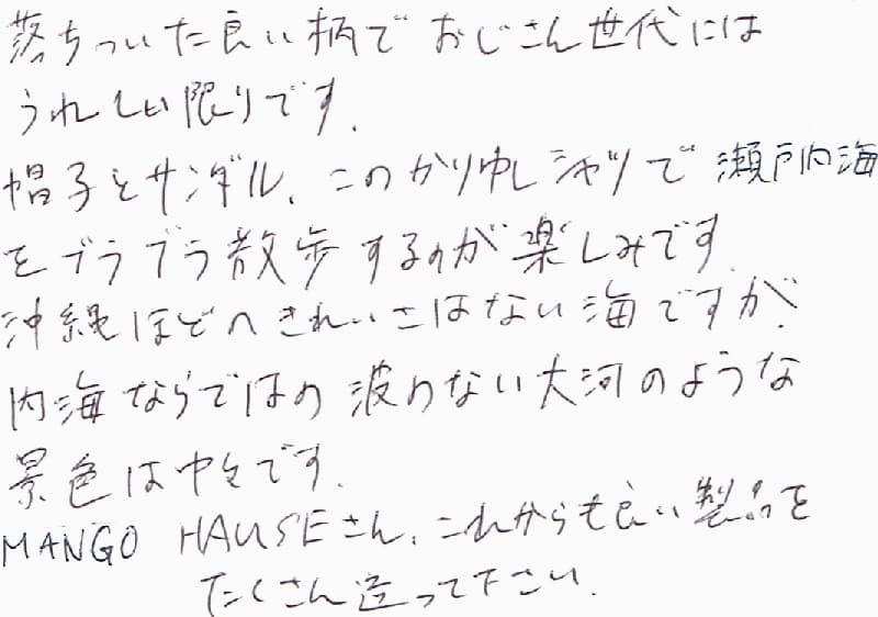 - マンゴハウスのかりゆしウェア購入させて頂きました。