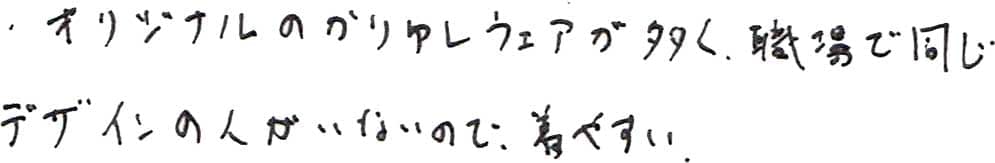 オリジナルのかりゆしウェアが多く、職場で同じデザインの人がいないので、着やすい。