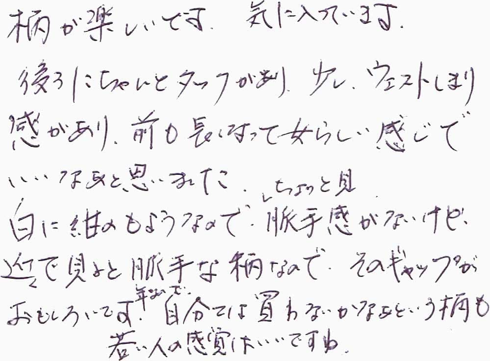 - こちらには無い模様で派手かと思いましたが、案外似合っています。