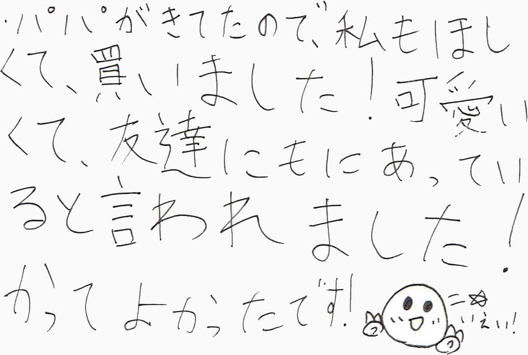 パパがきてたので、私もほしくて、買いました!可愛いくて、友達にもにあっていると言われました!かってよかったです!