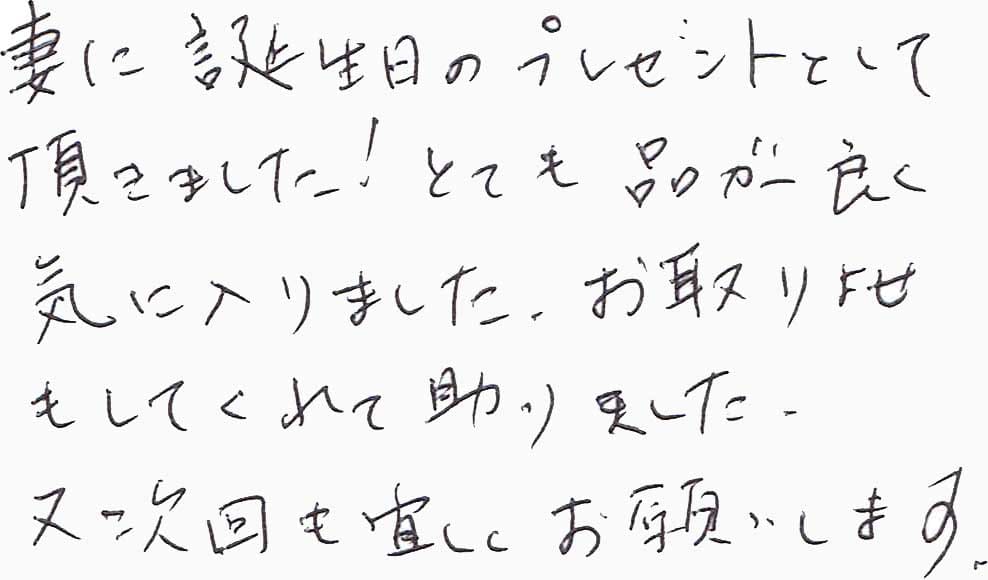- 受注から発送まできめこまやかな対応をして下さってありがとうございました。