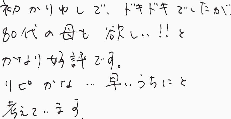 - 丁寧な接客と分かりやすい説明で両親にも喜んでもらえました。