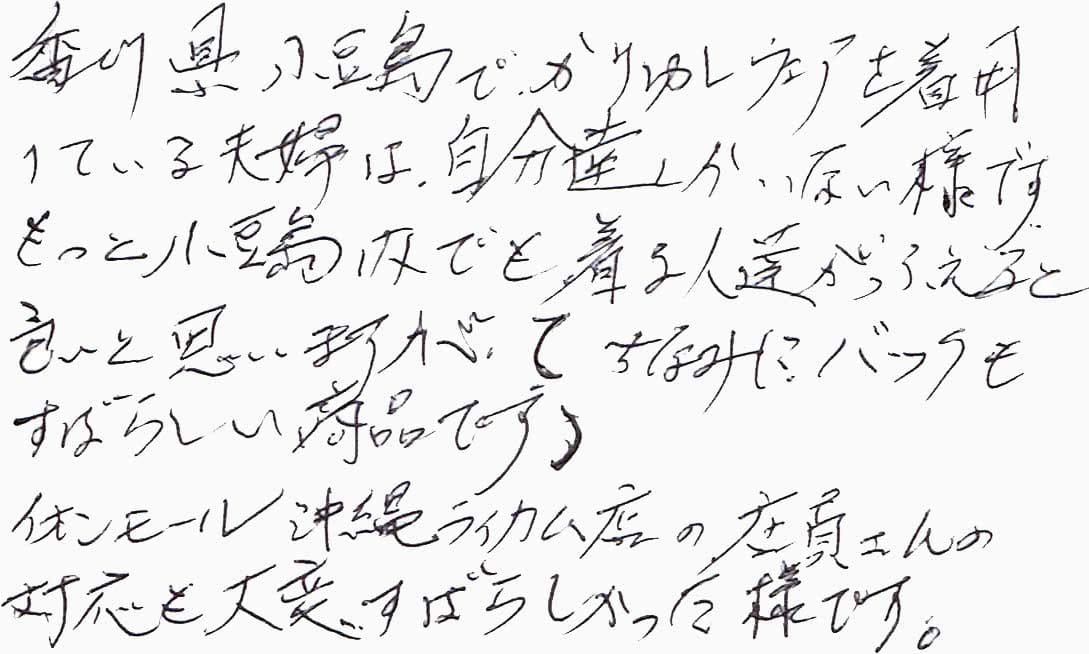 - イオンモール沖縄ライカム店の店員さんの対応も大変すばらしかった様です。