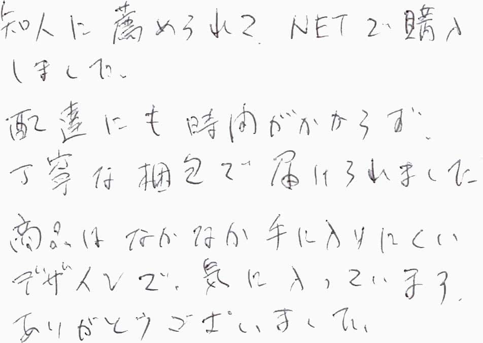 - 配達にも時間がかからず、丁寧な梱包で届けられました。