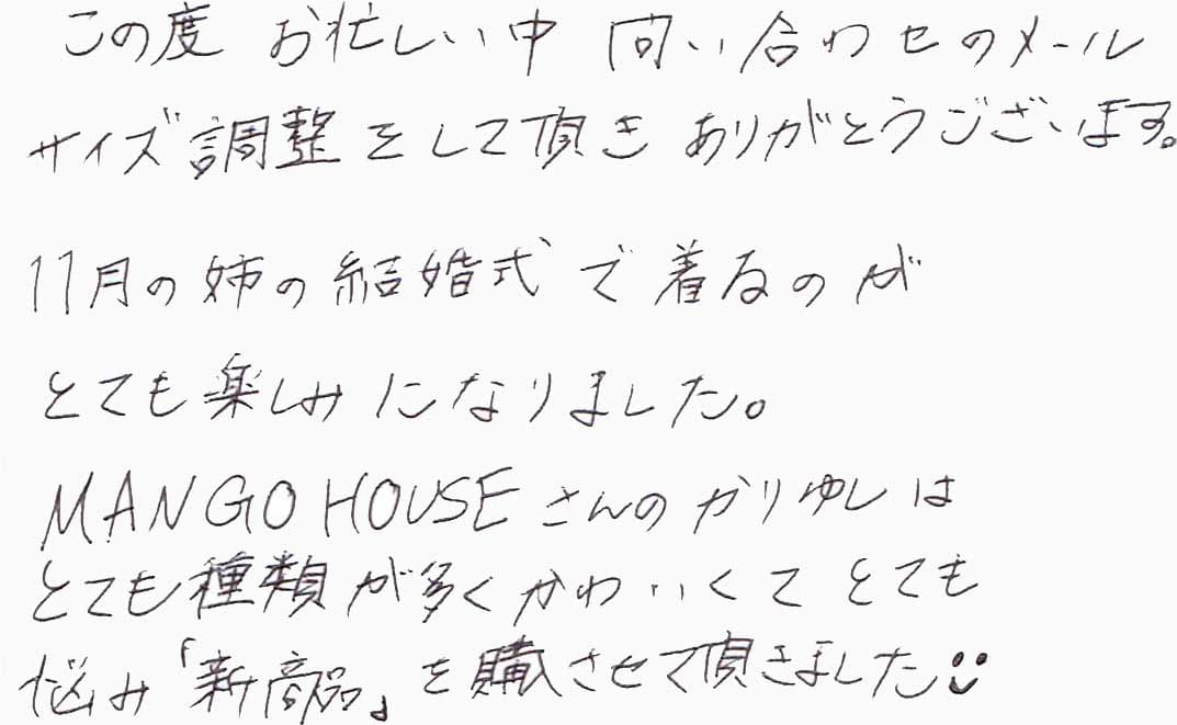 - 11月の姉の結婚式で着るのがとても楽しみになりました。