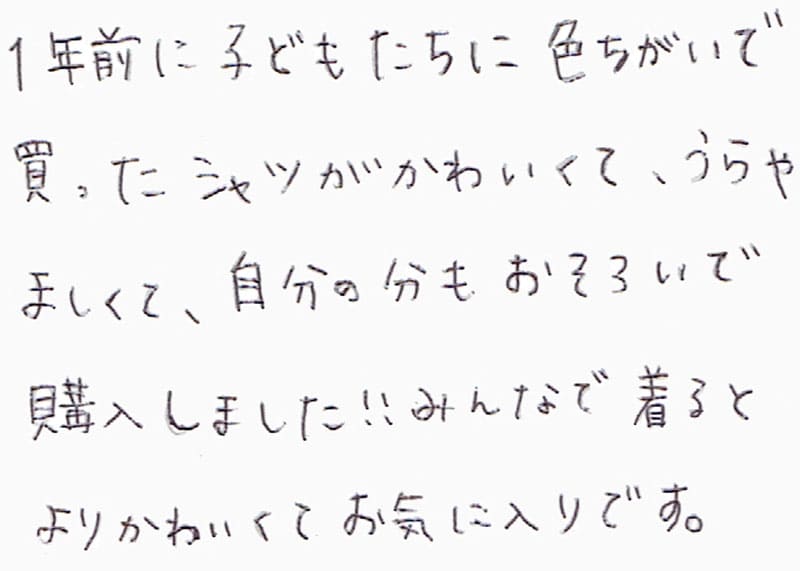 - 本当に着心地もよいし、Tシャツよりも使い勝手がとても良いです。