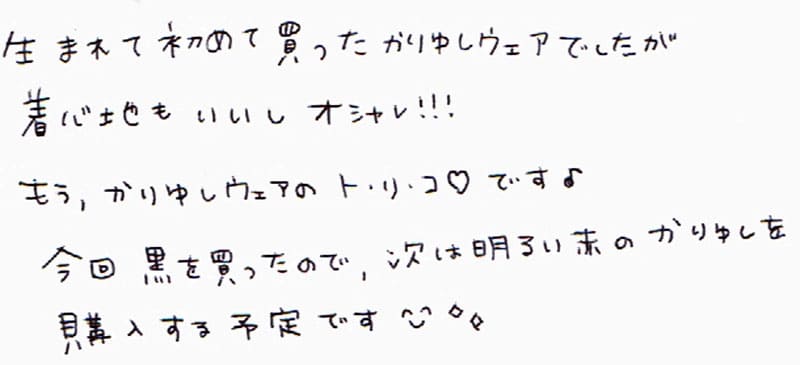 - 理想通りのウェアで楽しい時間を過ごせました!